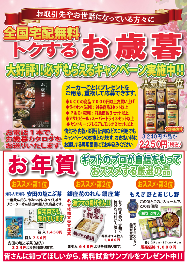 *お歳暮・必ずもらえるキャンペーンのご案内